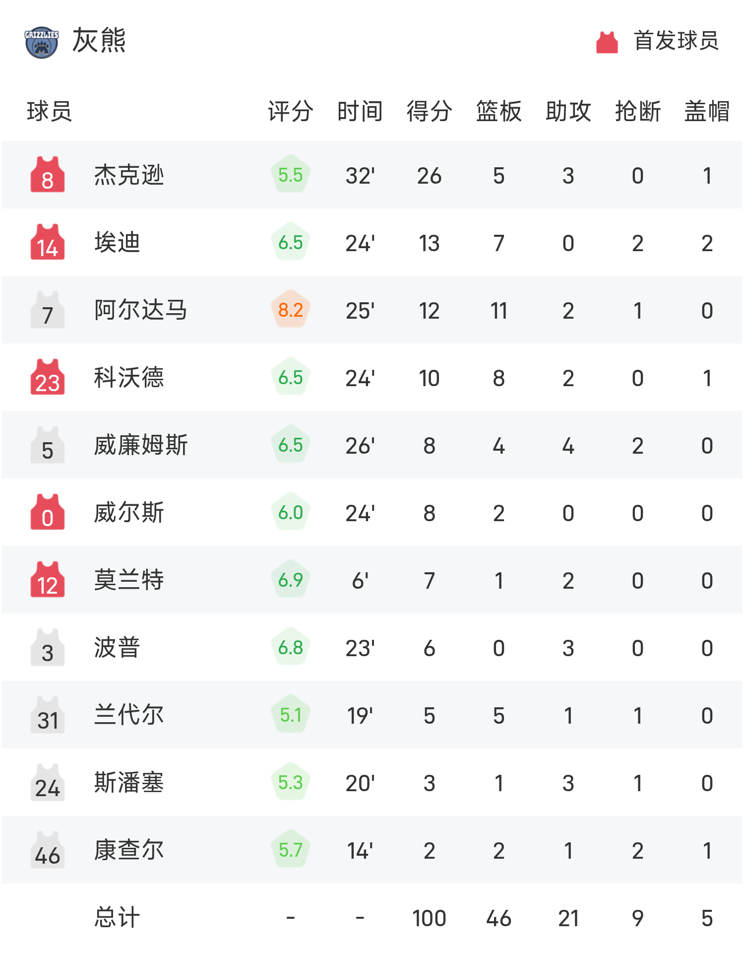 球员数据 查看更多