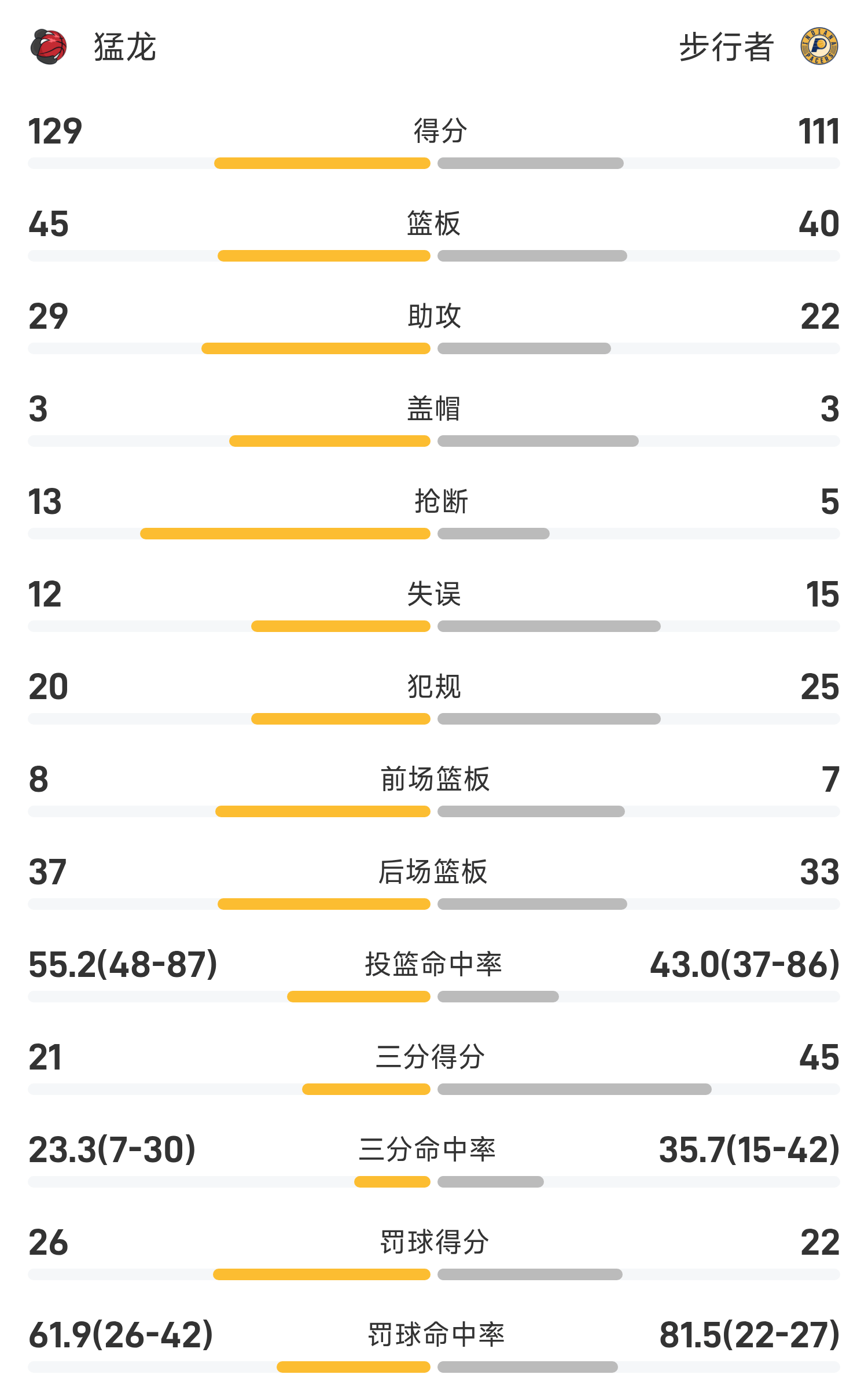 NBA战报:巴雷特22分6板,猛龙129-111轻取步行者