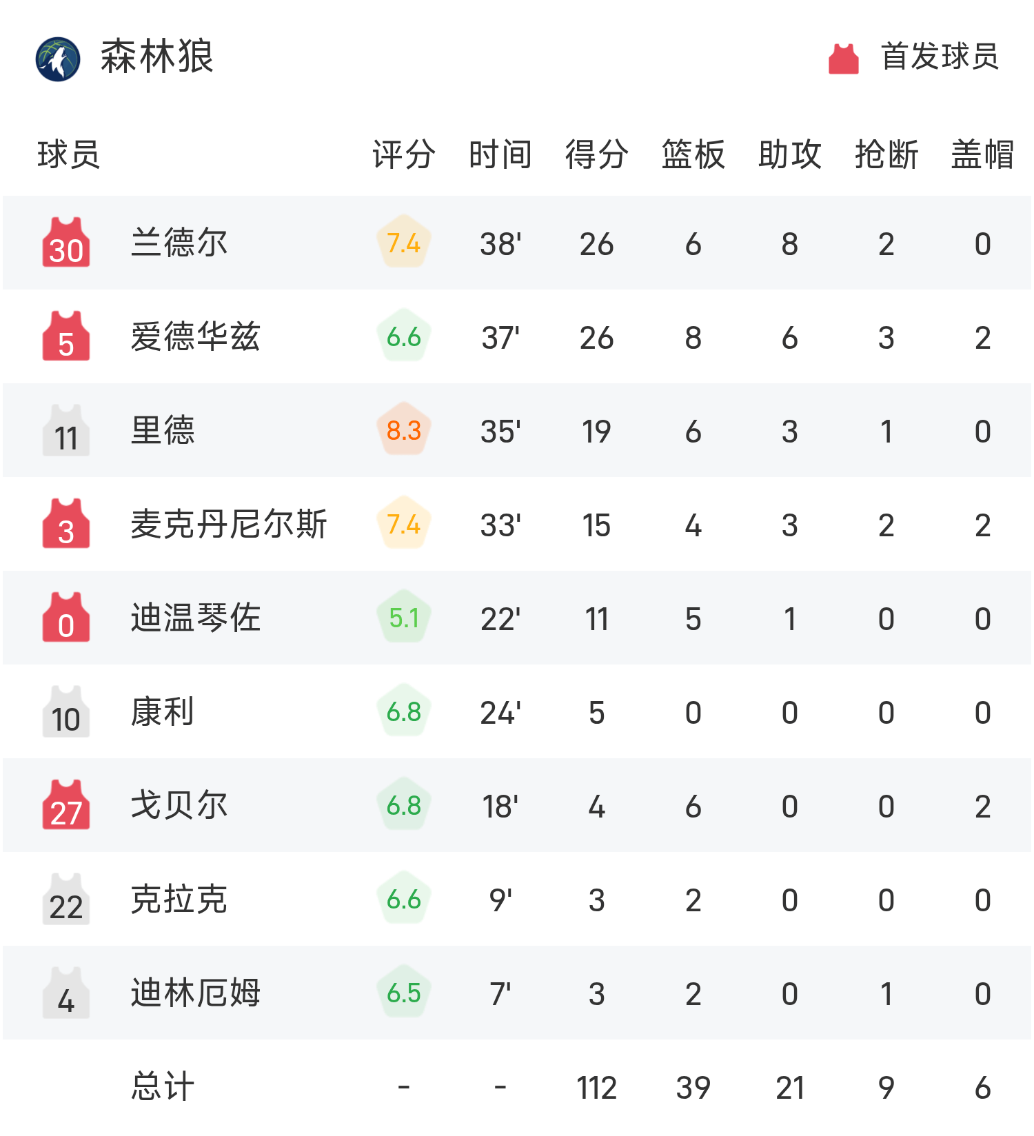 6686体育11月16日讯 25/26赛季NBA 常规赛,森林狼对阵掘金。双方全场战罢,森林狼112-123不敌掘金。约基奇砍下全场最高的27分12板11助,率领掘金胜利取胜。