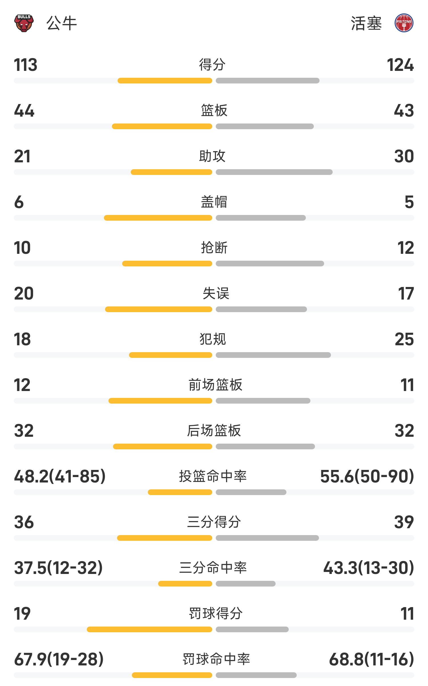 NBA战报:里德28分12板6助,活塞124-113击败公牛