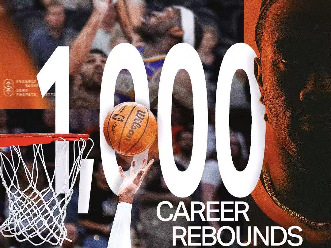 竞赛进行到第四节,太阳五号位马克·威廉姆斯已经抢到了十个抢篮板,职业生涯抢篮板球总数突破1000大关。