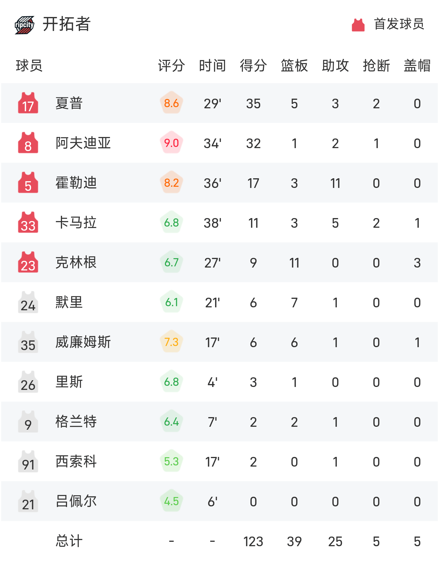 NBA战报:杨瀚森未登场&夏普35分,开拓者125-117鹈鹕