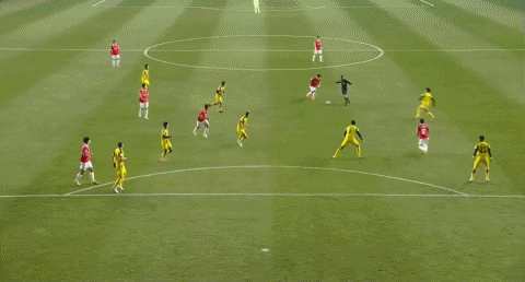 48’金钟佑尝试一脚外围射门,皮球绵软无力