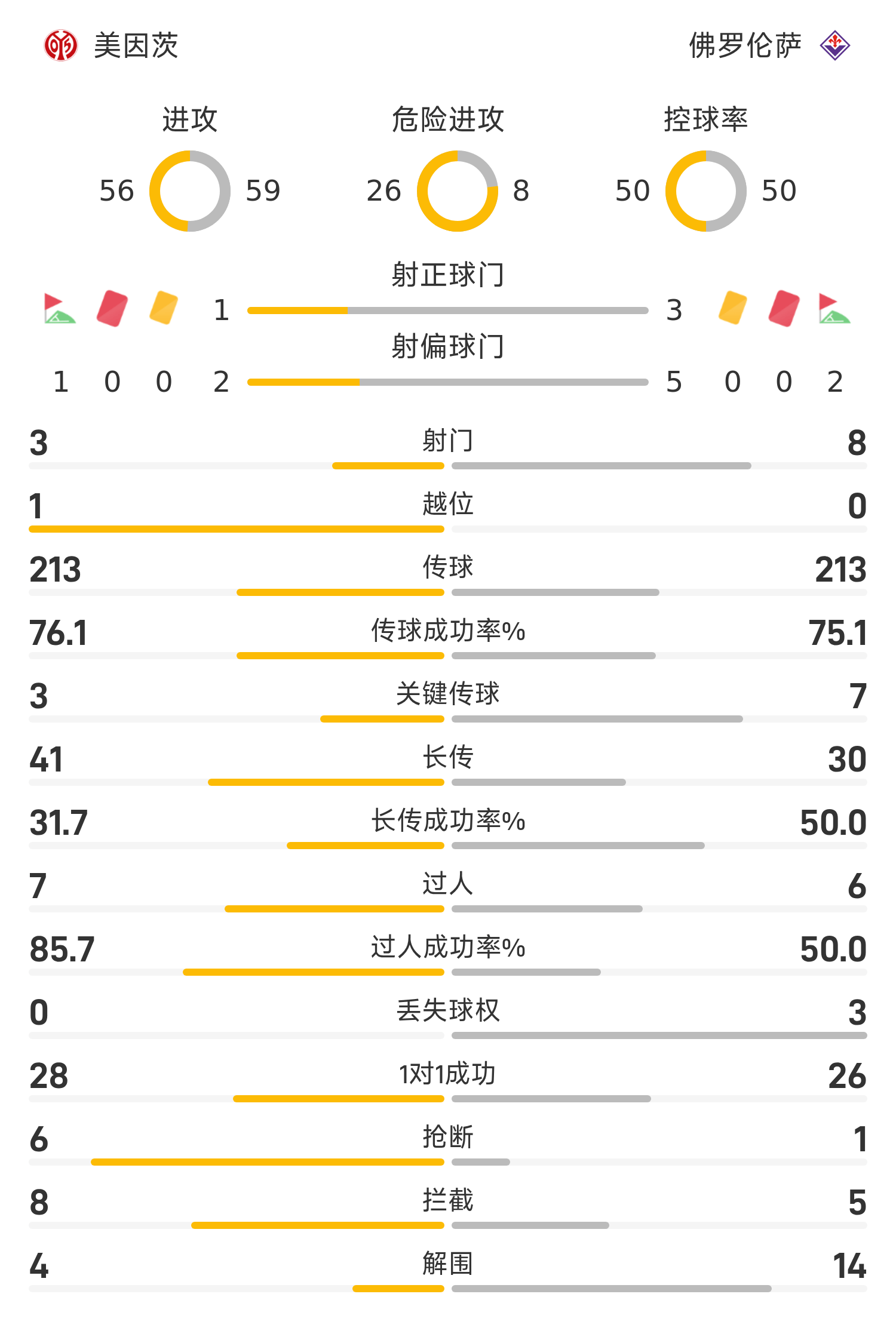 佛罗伦萨首发阵容:30-马蒂内利、18-马里、5-庞格拉契奇、6-拉涅利、2-多多、14-卡维利亚、7-索姆、27-恩杜尔、29-福蒂尼、91-皮科利、22-法齐尼