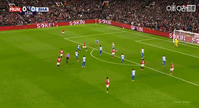 44’姆伯莫送保姆球,谢什科左脚抽射打偏,曼联仍2-0布莱顿