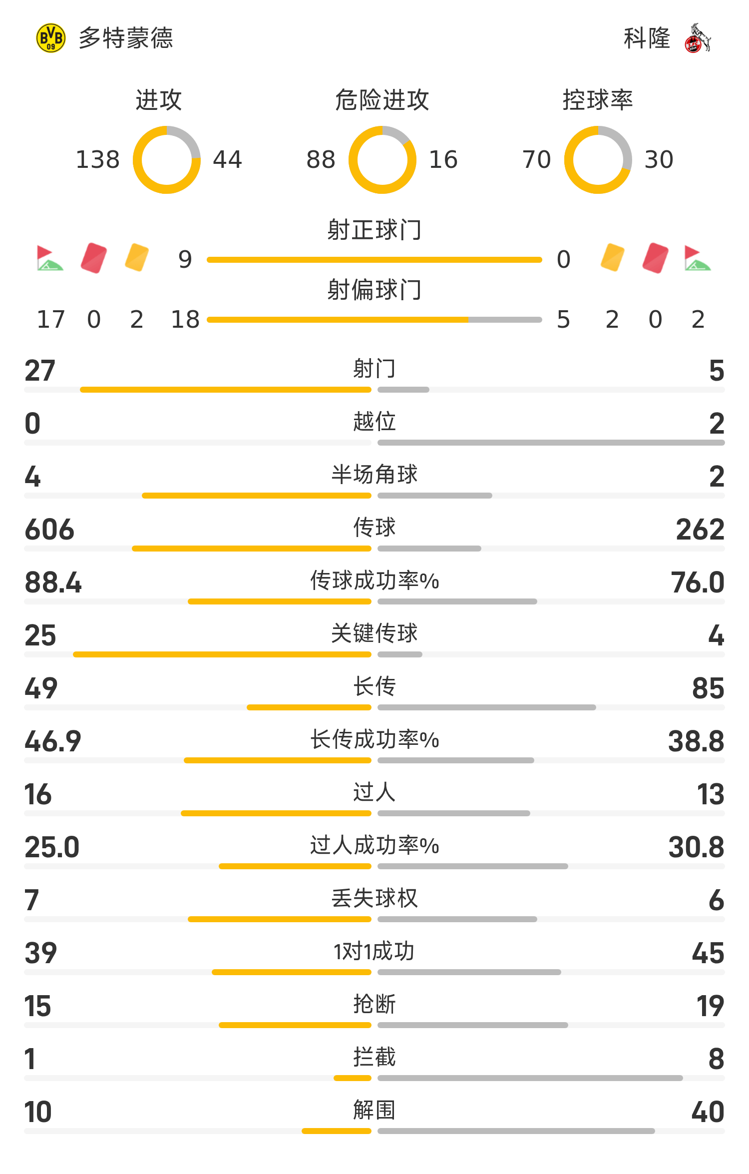 德甲战报:斯克韦伯屡献神扑,拜尔补时最后一投,多特1-0科隆