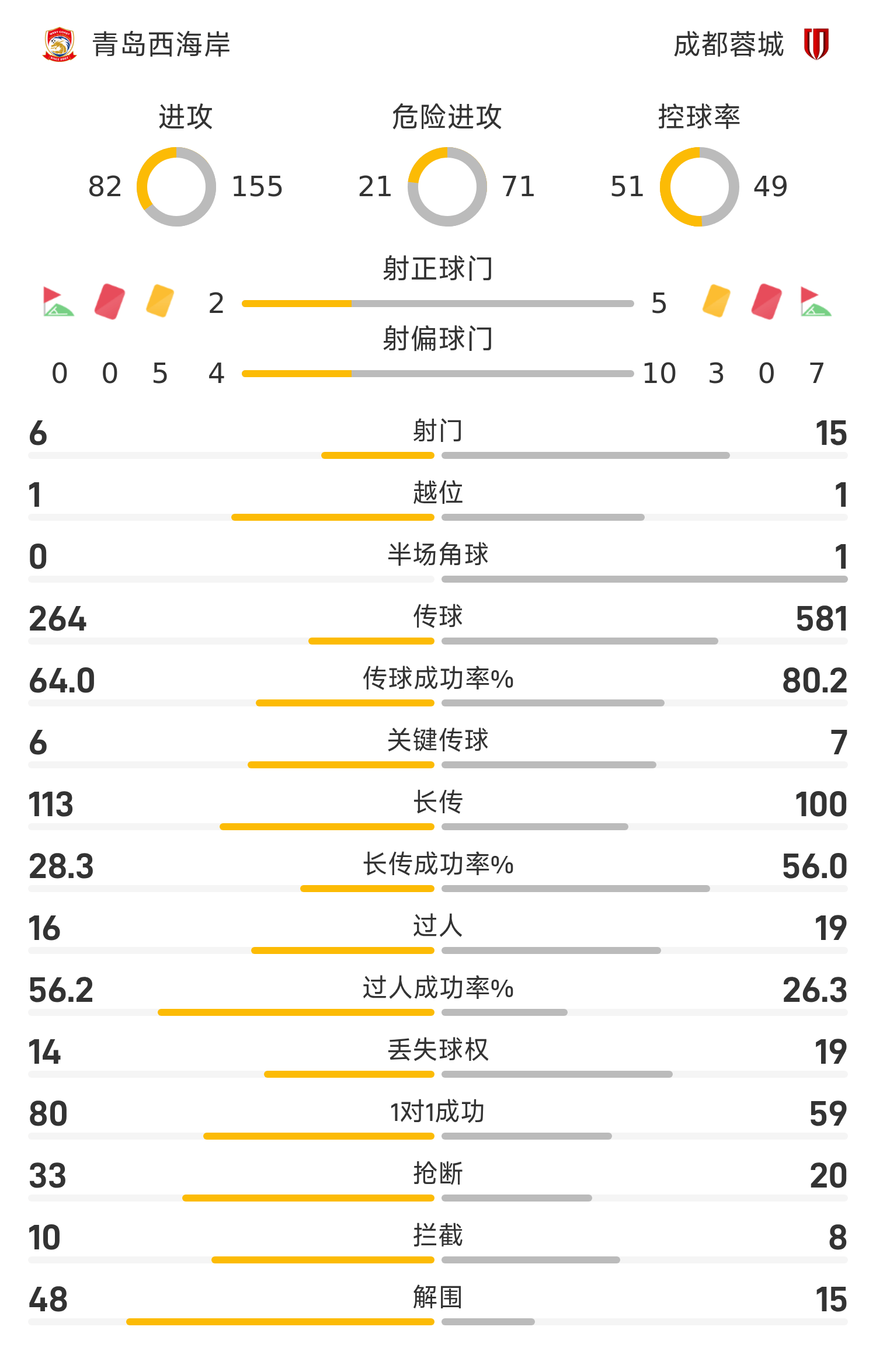 25’边线球混战中费利佩扫射没能打上力量,蓉城仍0-0西海岸