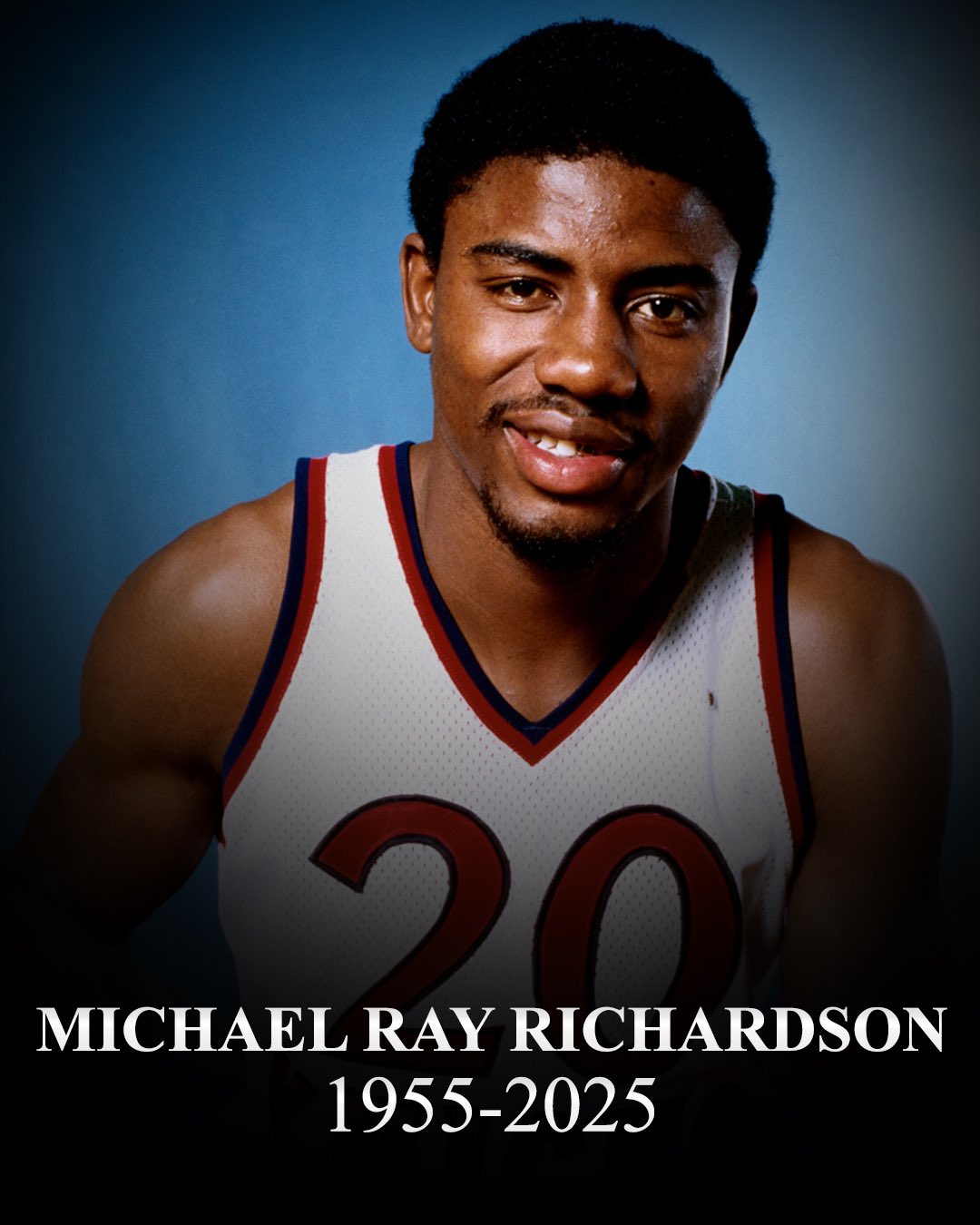 迈克尔·雷·理查德森在当地时间11月11日因前列腺癌在俄克拉荷马州离世,享年70岁。1978年NBA选秀大会上,理查德森以第四顺位被选中。他在NBA效力八年,先后效力于纽约尼克斯队、金州勇士队和新泽西篮网队。他四次入选NBA全明星,并三次荣膺联盟截球王,绰号“甜心(Sugar)”。