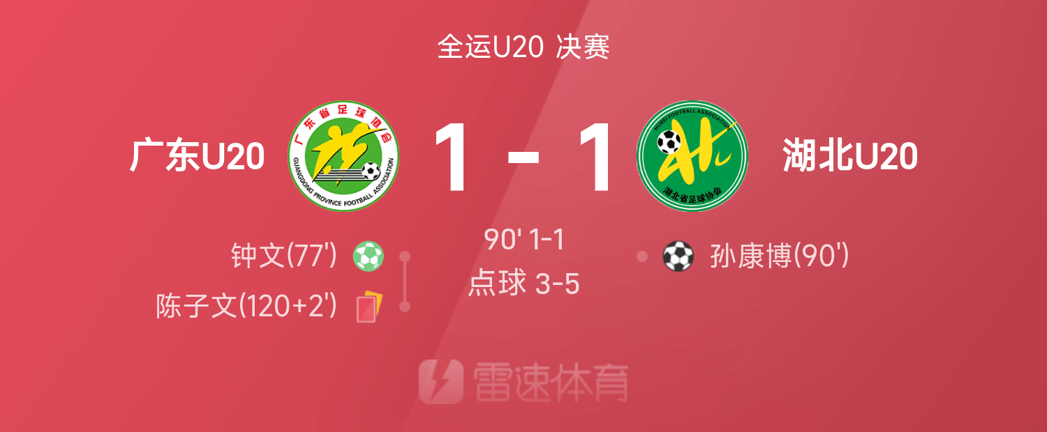 全运U20战报:王智诚制胜,湖北总分6-4点杀广东夺金
