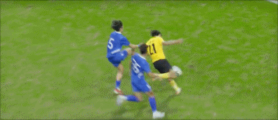 36’张志雄三秒区内倒地,主裁判判没有吹罚十二码